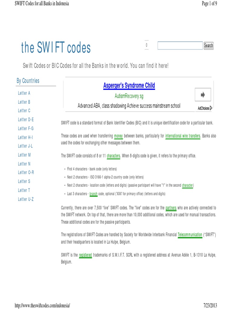 As of December 2020, the bank had 2,511 branches spread across three different time zones in Indonesia and 7 branches abroad, about 13,217 Automatic Teller Machines (ATMs), and five principal subsidiaries: Mandiri Sekuritas, Mandiri Tunas Finance, AXA Mandiri Financial Services, Bank Mandiri ... SWIFT Codes & BIC Codes for all Bank Branches each country wise. Search SWIFT Codes of International Banks Branches Address for online transfer