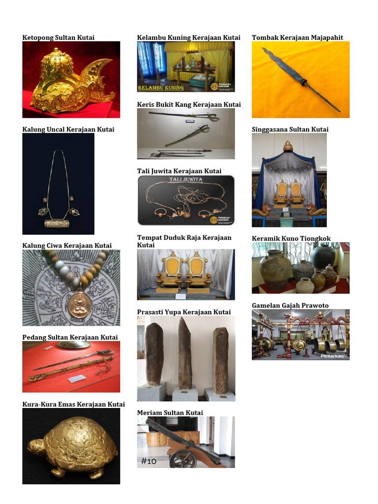 Although the end of the sheath is decorated with crocodile carvings, Sultan Kutai's sword is still around and has survived to this day. This sword can be found at the Jakarta National Museum. Kura-Kura Emas. This golden tortoise is one of the historical relics of the Kutai kingdom, which is now in the Mulawarman Museum. This object is half of ...