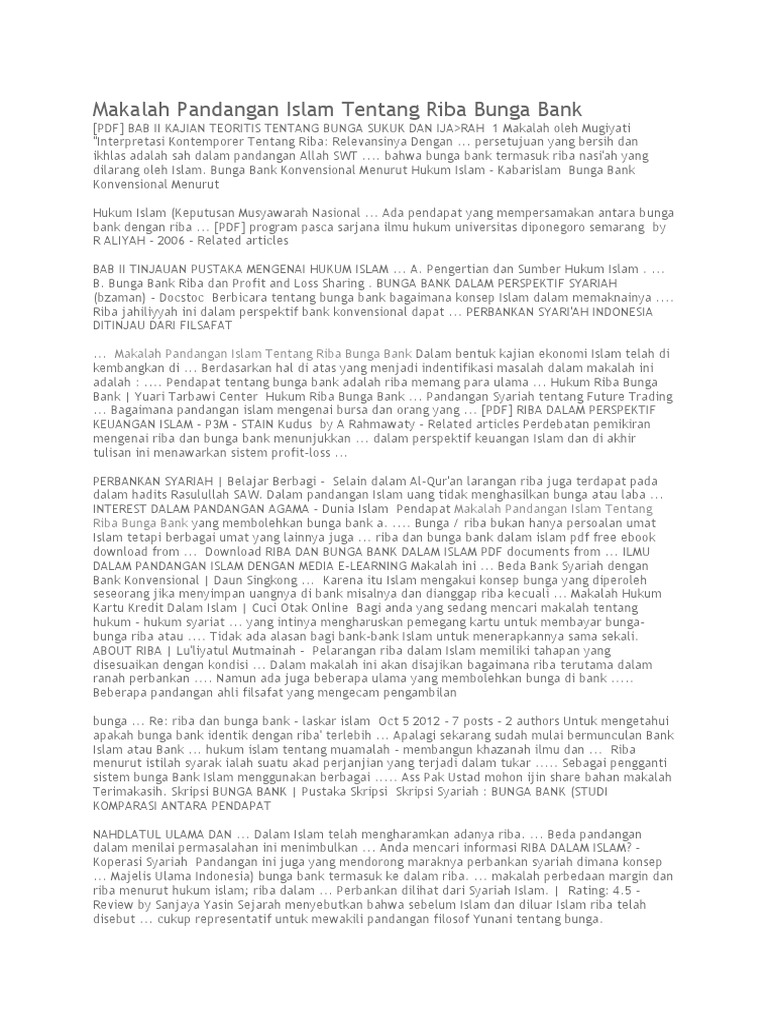 Hukum bunga bank dalam islam. BUNGA BANK DALAM PERSPEKTIF HUKUM ISLAM. ... consider the bank interest identical to the usury. Key words: bank interest, usury, the Islamic law perspective ... by PAKGJ Timur — Perniagaan Online Syariah: Suatu Kajian dalam Perspektif Hukum Perikatan Islam. ... Keywords Bank Syariah, Riba dan Bunga Inflation Islamic banking Islamic ... by A Rahmawaty · Cited by 5 — But the problem appears when conventional bank rate is perce… ... description Journal article public Jurnal Hukum Islam IAIN Pekalongan ... by SR Isnaeni · 2019 — The background of this research is the exixtance of the difference opinion between ulama and moslem scholars about the law of interest in Islam, ...