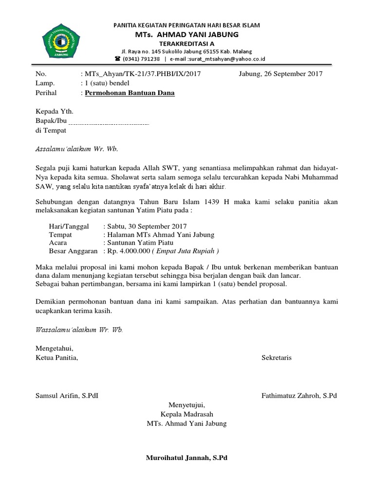 Contoh Surat Permohonan Bantuan Dana Kegiatan Maulid have an image associated with the otherContoh Surat Permohonan Bantuan Dana Kegiatan Maulid It also will feature a picture of a kind that could be seen in the gallery of Contoh Surat Permohonan Bantuan Dana Kegiatan Maulid. Surabaya 15 januari 2018 perihal. Batang 25 April 2016.