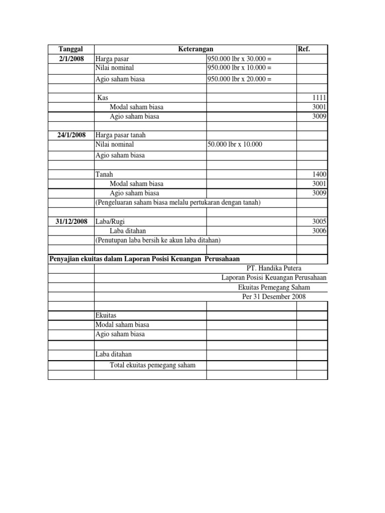 Aryo Humanika: Istilah Akuntansi Dalam Bahasa Inggris Jul 09, 2009 · Agio saham (additional paid-in capital) Laba ditahan yang diappropisasi (appropriated retained earning) Efek tersedia untuk dijual (avaiable-for sale securities) Dewan direksi (board of directors) Penggabungan Usaha (business combination) Dapat ditarik (callable) Deviden tunai (cash dividen) Dapat dikonversi (convertible) Metode biaya (cost method) saham in english Same for both Day & Night Varsha Pravesha. Saham in english. Moreover, bab.la provides the English-Korean dictionary for more translations. saham. Use * for blank tiles (max 2) Advanced Search Advanced Search: Use * for blank spaces Advanced Search: Advanced Word Finder: See Also in Malay. Here only one word has been listed for the hindi word 'सहम कर पीछे हट जाना ... PDF Laporan Keuangan - idx.co.id Agio saham yang berasal dari selisih lebih antara nilai yang diterima dari pemegang saham pada saat penawaran saham kepada masyarakat (IPO) dengan nilai nominal saham adalah sebesar Rp 221.052.480.000. On 12 June 2017, the Company obtained an effective statement from Financial Sercvices ...