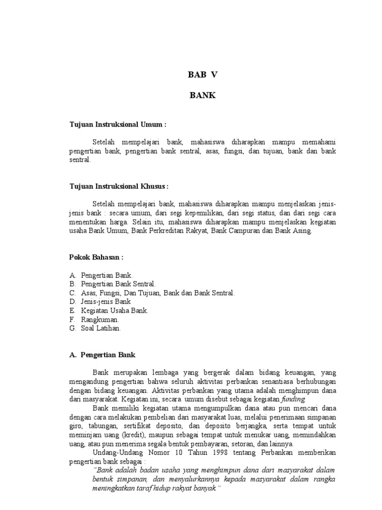 Apa Itu Bank? Pengertian Umum dan Ahli, Fungsi serta Jenis ... Fungsi umum bank yang pertama adalah sebagai lembaga yang menghimpun dana dari masyarakat. Dana yang dikumpulkan oleh bank mencakup 3 sumber utama yakni setoran modal awal saat bank berdiri, dana bersumber dari masyarakat luas dalam bentuk tabungan, dan deposito serta dana lembaga keuangan lain. Pengertian Bank, Fungsi, Tujuan dan Jenis Bank Secara Umum Fungsi Umum Bank Sebagaimana disebutkan dalam pengertian bank sebelumnya, fungsi bank ibarat lembaga yang memiliki kewenangan untuk menghimpun dana dari masyarakat dan menyalurkannya kepada masyarakat untuk berbagai keperluan. Selain fungsi tersebut, terdapat 3 fungsi khusus Bank, seperti: Agent of Trust 3 Fungsi dan Tugas Bank Umum yang Harus Anda Tahu ... Fungsi yang pertama dari bank umum adalah sebagai agen pembangunan atau agen of development. Dimana bank umum memiliki kewajiban untuk ikut turut serta dalam pembangunan Negara Indonesia. Sehingga setiap bank umum yang ada di Indonesia haruslah memiliki visi dan misi yang jelas dalam pembangunan Indonesia. Fungsi-Fungsi Bank Secara Umum Sebagai Kredit Pasif dan ... Fungsi Bank. Secara garis besar fungsi bank di Indonesia dapat digolongkan sebagai berikut. a. Sebagai Kredit Pasif. Dalam hal ini bank berfungsi sebagai penghimpun dana/pembeli dana dari masyarakat dengan berbagai cara yang berupa produk-produk berikut. Giro, adalah simpanan di bank yang dapat diambil setiap saat dengan menggunakan cek, bilyet ...